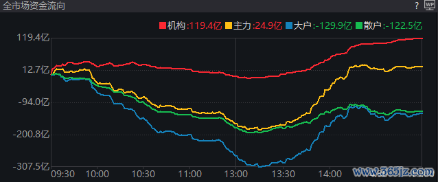 13:10~14:15,全市场各类资金回头买入,且放量了。